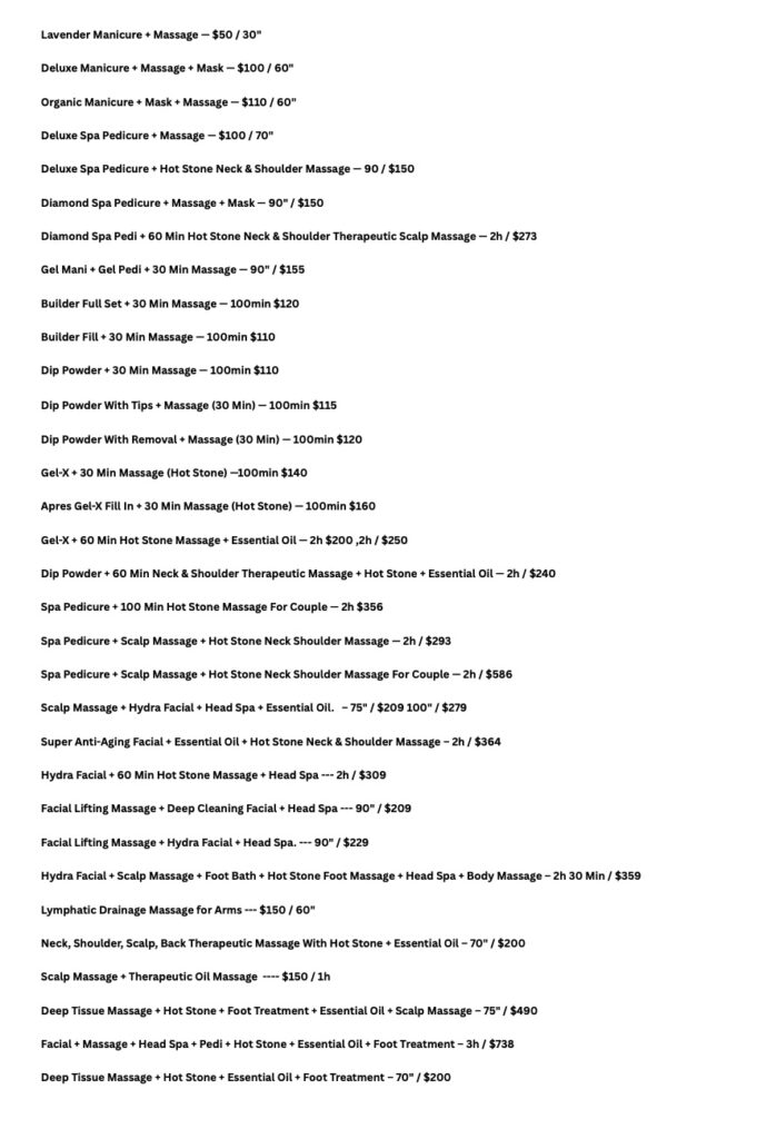 We’re excited to share that Jenny’s Therapeutic Massage & Spa, your trusted wellness destination in Fairfax, VA, now offers even more ways to relax and refresh. In addition to our signature massages and rejuvenating facials, you can now enjoy professional nail care, soothing head spa treatments, and full-body waxing services. Whether you’re here for a calming massage, glowing skin, beautiful nails, or a revitalizing head spa, our experienced team is ready to pamper you in a welcoming, serene environment. Book your appointment today and experience the complete spa journey—all in one place, right here in Fairfax.